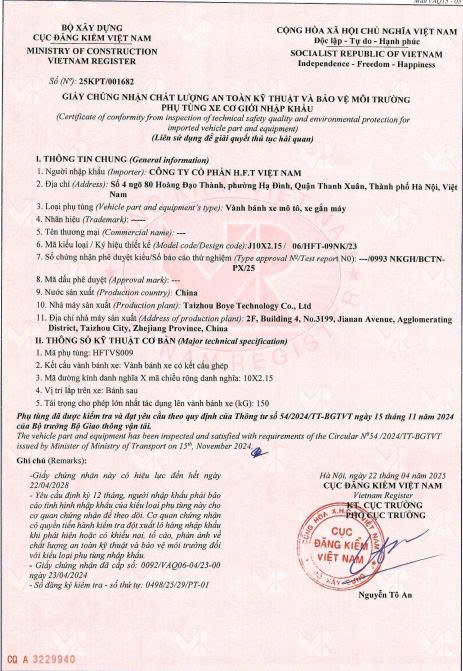 Giấy chứng nhận: